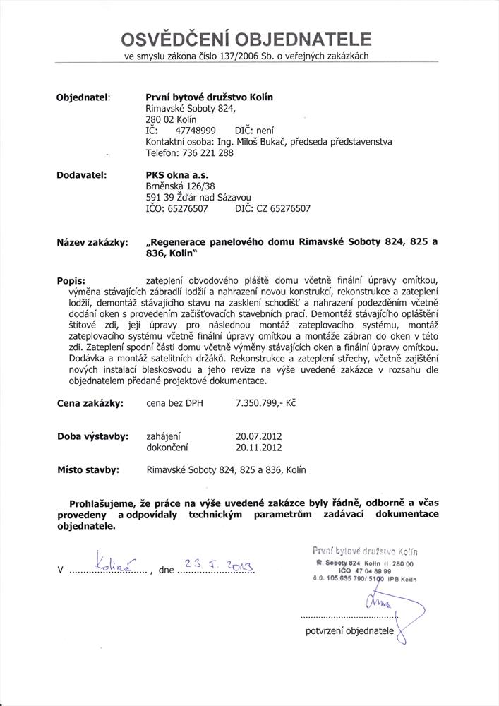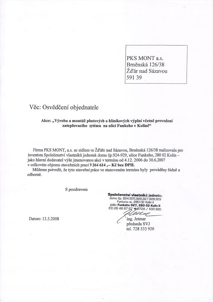 Těší nás, když naši práci naši zákazníci oceňují a rozhodnou se nám to poté např. i napsat či sdělit. Dovolujeme si Vám předložit alespoň několik takových dopisů, které nám píšou naši spokojení z řady bytových družstev, společenství vlastníků bytových jednotek, atd.